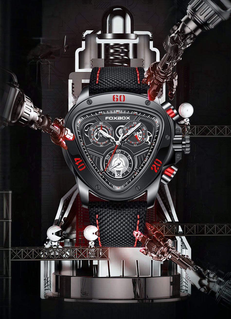 • Montre Sportive à la Mode : Cadran triangulaire avec 3 sous-cadrans pour le chronomètre, l'affichage 24H et les secondes. Design unique pour vous distinguer.